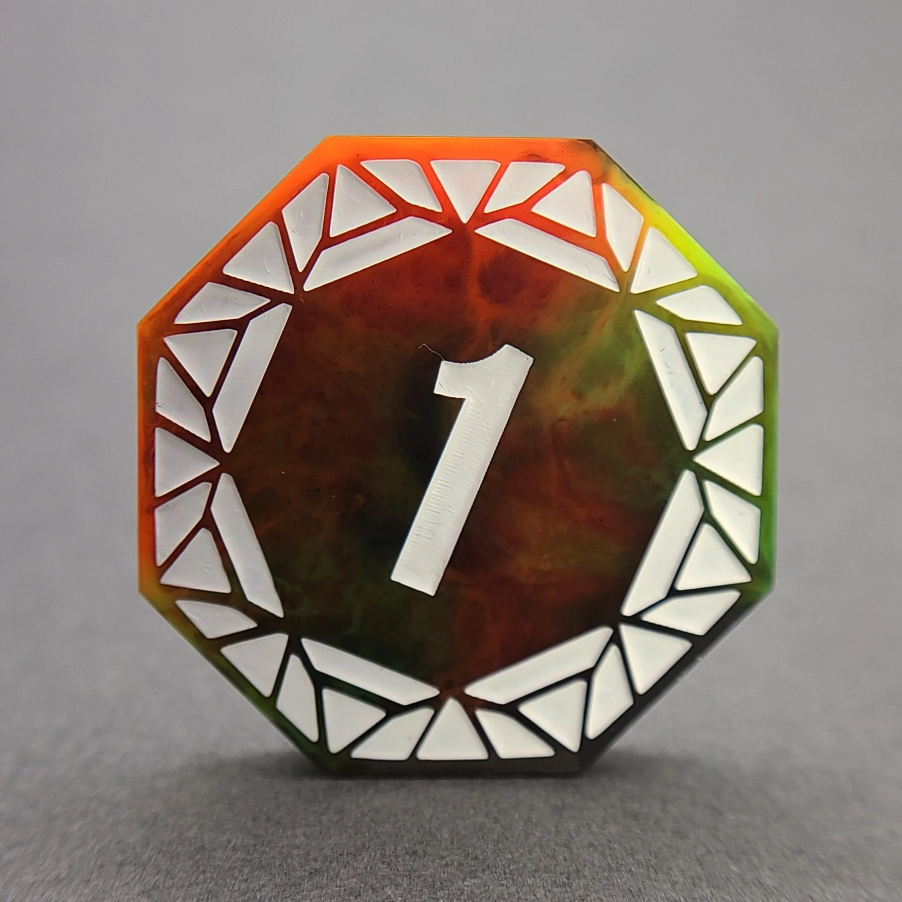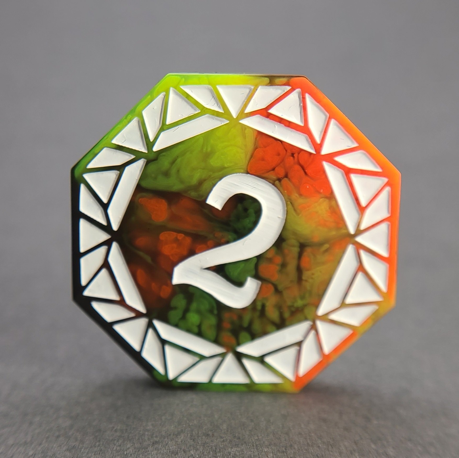 Includes a single D2 with numbers surrounded by an ornamental pattern.