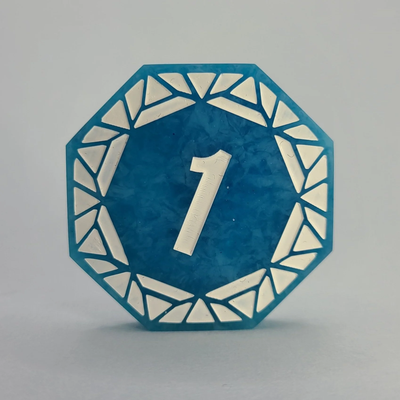 Includes a single D2 with numbers surrounded by an ornamental pattern.